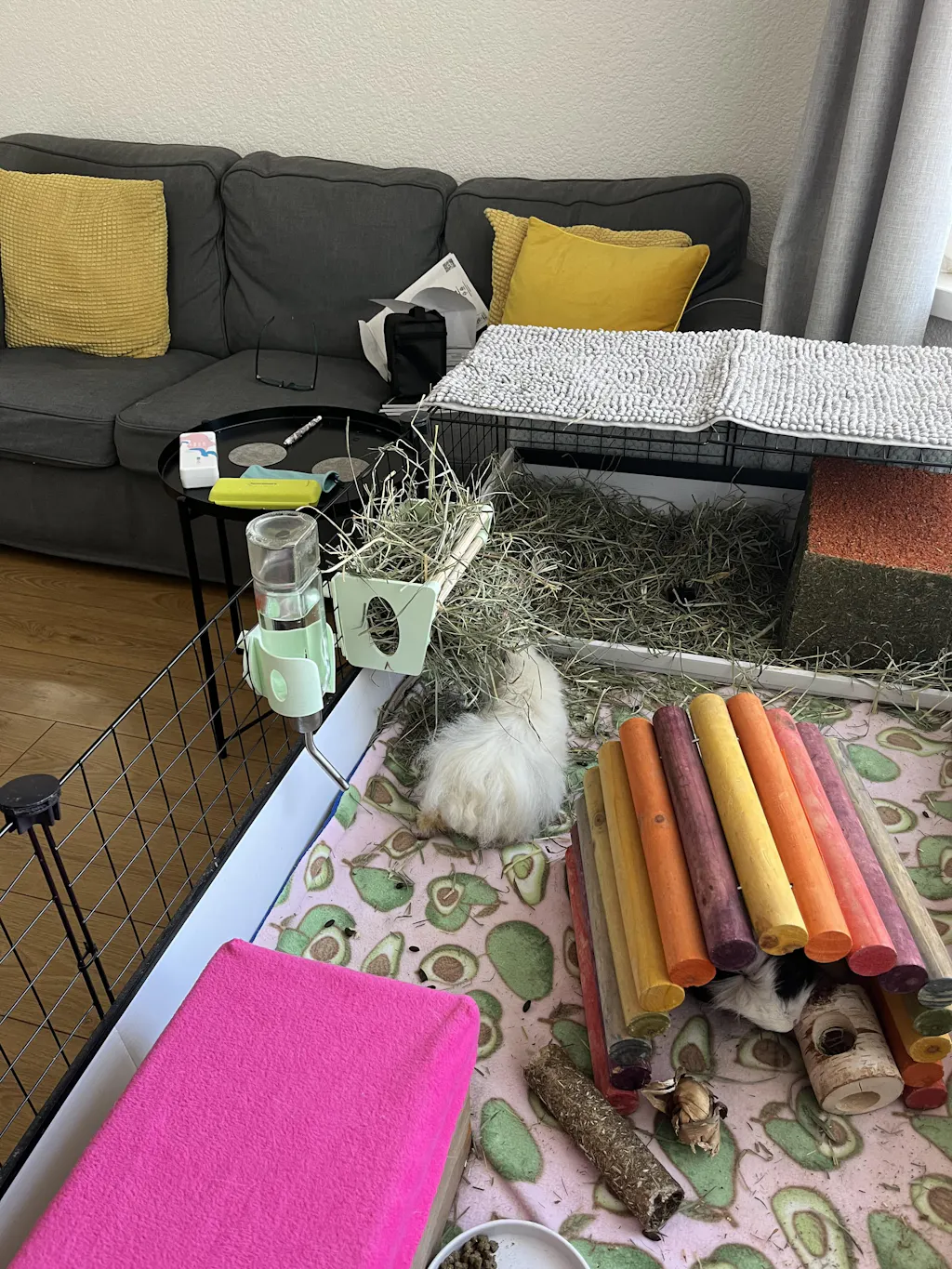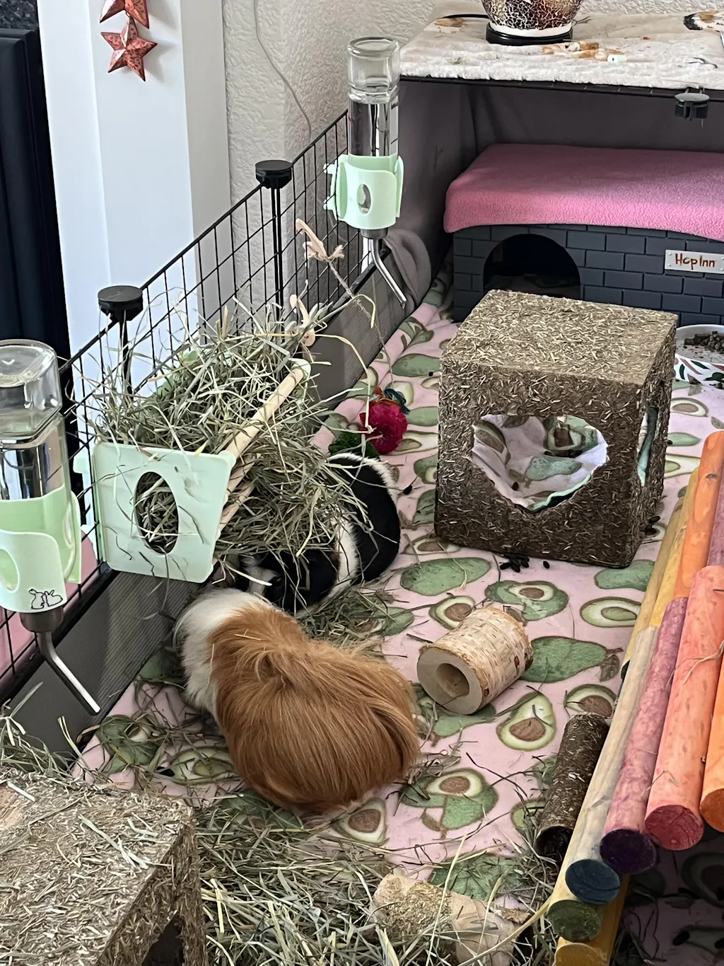 I love how easy the water bottle holders are to use. The hay racks take a bit more to set up but once they're attached, they're great. I love all the different colours as well.